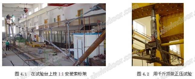 當確定了水平索桁架的基本和體型后,在結構整體計算結果的基礎上,為能確保其使用時的安全性,我們采用了1:1的實體水平索桁架作靜力荷載試驗,將試驗結果與計算結果進行對比、分析,最終確定水平索桁架的