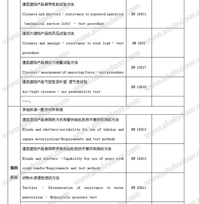 4 中國建筑遮陽產品認證與標準 從企業規模、標準規范的建立、產品推廣等方面來看,我國建筑遮陽產品認證條件已基本具備。 4.1 企業規模 目前,我國有遮陽企業2000~3000家,成規模的有100多家。數量不少,技術水平也在不斷提高。隨著標準體系的不斷完善、產業規模的不斷壯大、技術水平的不斷提高、產品價格的降低,我國發展建筑遮陽的時機已經越來越成熟 4.2 標準規范的建立 加速技術法規和標準的制定,對推進建筑產品質量監督和市場準入工作具有十分重要的意義。