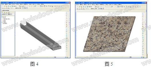 點(diǎn)擊Pro/E菜單“視圖”→“顏色和外觀”,打開“外觀編輯器”。編輯器中定義有各種材料的著色效果,可以給整個模型定義一種顏色,也可以給模型的各個面定義不同的顏色。如果編輯器中沒有合適的顏色,也可以自己添加新的材料并定義顏色。圖4為鋁型材上色后的顯示效果。
