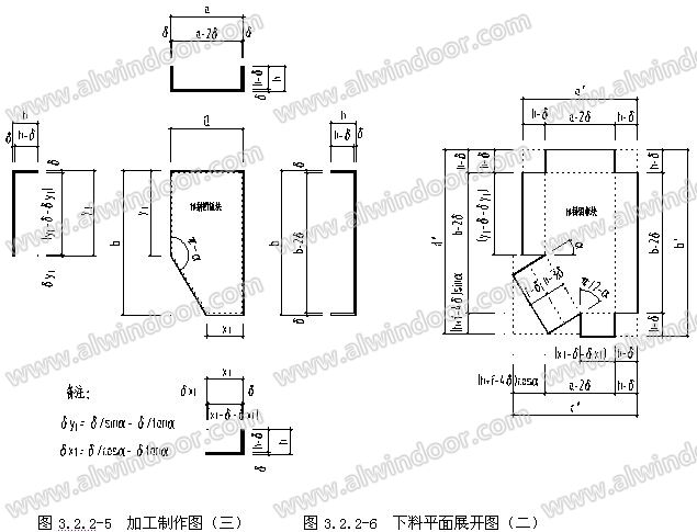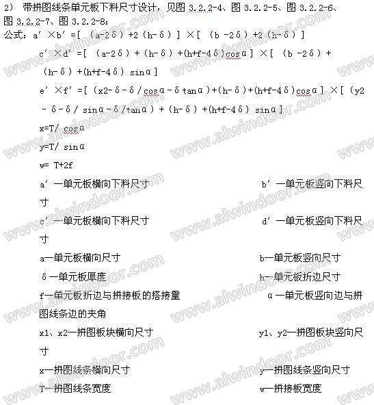 2 單元板下料尺寸設計: 單元板包括一般單元板、帶拼圖線條單元板和帶玻璃單元板三種基本形式,下料尺寸設計方法如下: