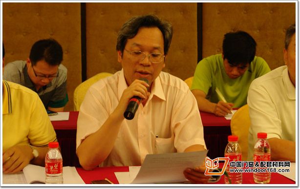 建筑門窗配套件委員會副主任、廣東合和建筑五金制品有限公司總經理 唐業強 先生宣讀委員會第四屆委員、副主任委員產生說明