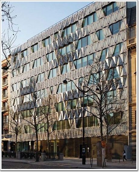 | 這是由manuelle gautrand建筑事務所設計的巴黎折紙辦公樓。建筑坐落在一個豪華的巴黎街道邊,有著理想的城市景觀視線。