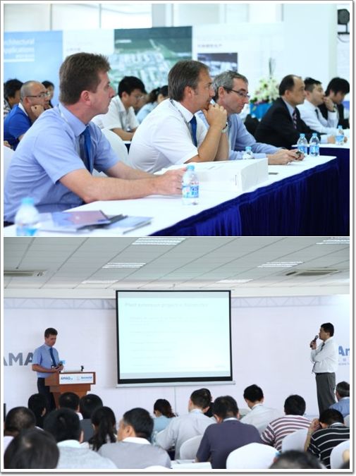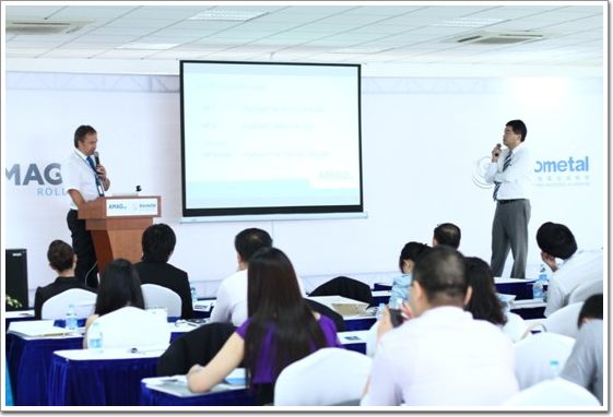 AMAG的新產品讓在座的建筑設計師都非常心動,紛紛詢問合作方式,合辦方中美合資高新技術企業上海安美特鋁業有限公司的項目部經理向大家介紹了未來的合作模式。上海安美特鋁業有限公司作為AMAG在中國建筑市場的營銷、銷售和物流合作伙伴將為AMAG建筑鋁板產品提供卷料陽極氧化處理。在公司介紹中,我們了解到,中美合資上海安美特鋁業有限公司是全球僅有的幾家擁有連續卷材預氧化生產線廠家之一,是中國第一家卷料陽極氧化工廠,在卷材氧化行業有15年經驗,在國內陽極氧化鋁卷材行業中,安美特始終保持著市場份額第一,是亞太地區預表面處理鋁材的領導者,該公司已通過英國UKAS及瑞士SGS認證機構的ISO9001、ISO14001體系認證,所有產品均通過SGS環保體系認證。會議期間,安美特鋁業的董事長及總經理攜建筑行業所有來賓參觀了安美特工廠生產線,相信兩大行業巨頭強強聯手,能給我們帶來最優質的建筑氧化鋁板。