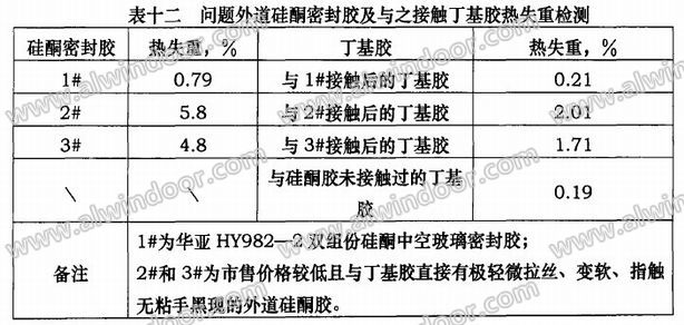 JC/T914-2003《中空玻璃用丁基熱熔密封膠》標準中要求丁基膠的熱失重小于等于0.5%但與問題外道硅酮密封膠2#或3#接觸后, 丁基膠的熱失重由0.19%