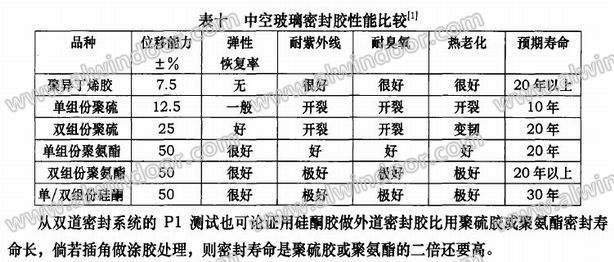 分別增至2.01%和;1.71%如前所述, 熱失重用于考核內道丁基密封膠的熱老化性, 如果熱失重不符合要求, 內道丁基密封膠中的低分子物質經紫外線照射會使中空玻璃間隔層內發霧。如果建筑物上使用了這樣的中空玻璃, 由于長時間的陽光照射, 密封膠中的低分子物質逐漸揮發出來, 會在玻璃內表面形成一層妨礙透視的油膜, 影響使用效果。由此觀之, 外道密封膠的熱老化性能差,熱失重過高, 且這種低分子物質能遷移至內道丁基膠致使內道丁基的熱失重也不合格的話,用這種外道密封膠制成的中空玻璃的密封壽命是難以保證的。