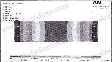 玻璃采用Shel163單元, 單元厚度16mm, 彈性模量72000N/mm²。