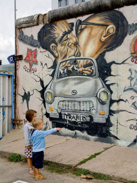 柏林墻與朝鮮半島上的“三八線”一樣,均為第二次世界大戰后的產物,又都為水泥所筑,可稱得上是歐亞大陸上的兩條“姊妹墻”。柏林墻是東德政府根據人民議院1961年8月12日通過的法令,于8月12~13日夜間修筑。目的是制止東德居民包括熟練技工大量流入西德。原為鐵蒺藜圍成的路障,后改筑成兩米高、頂上拉著帶刺鐵絲網的混凝土墻。在正式的交叉路口和沿線的觀察塔樓上設置警衛。1970年,雖然東西德之間關系有所改善,東德政府還是把柏林墻加高到3米以阻止居民逃向西方。到1980年,圍墻、電網和堡壘總長達1369千米。除筑墻外還嚴格限制西柏林與東德之間的人口流動。后根據東、西德政府1971年12月20日簽署的協議,限制略有放寬。1989年下半年,東歐各國政局劇變。民主德國在向德國西部移民浪潮的沖擊下,于同年11月9日,將存在28年零3個月的柏林墻推倒,促進了德國的統一。