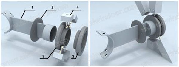 為滿足不同角度組合的玻璃龍骨的連接、為吸收不同三角玻璃平面的各類夾角、為調節各類構件的施工及加工誤差,本工程設計采用了萬向球鉸圓盤的構件節點系統,此連接系統主要包含以下各構件(圖12):1--連接件,2--圓形裝飾蓋板,3--法蘭盤,4--球鉸組件。