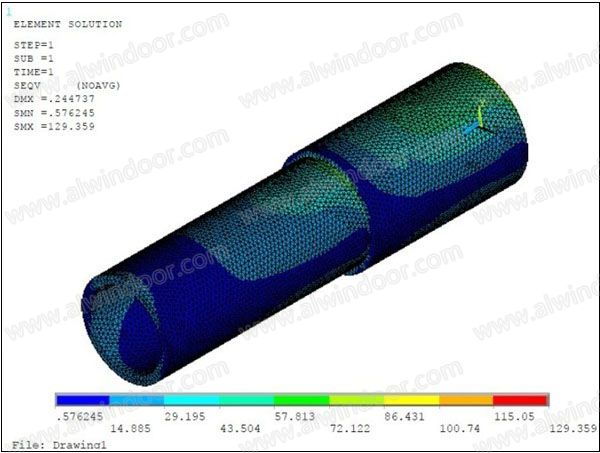 與主體結構連接鋼套管應力分析結果如圖11所示: