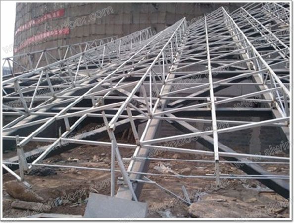 根據(jù)本工程特點及GRC造型,幕墻支撐鋼架設(shè)計采用空間三角桁架組合體系,保證結(jié)構(gòu)的受力及整體穩(wěn)定(圖14)。桁架主管及主橫梁采用60×5鋼方管,內(nèi)部斜撐等采用50×30×4鋼方管。鋼架采用熱浸鍍鋅處理后,表面再做深灰色防腐漆。主體結(jié)構(gòu)鋼環(huán)梁標準層高為6米,幕墻桁架采用螺栓連接鉸接(詞條“鉸接”由行業(yè)大百科提供)安裝在環(huán)梁上,形成多跨連續(xù)的空間桁架受力體系(圖15)。