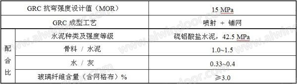 表1:GRC稱料配合比