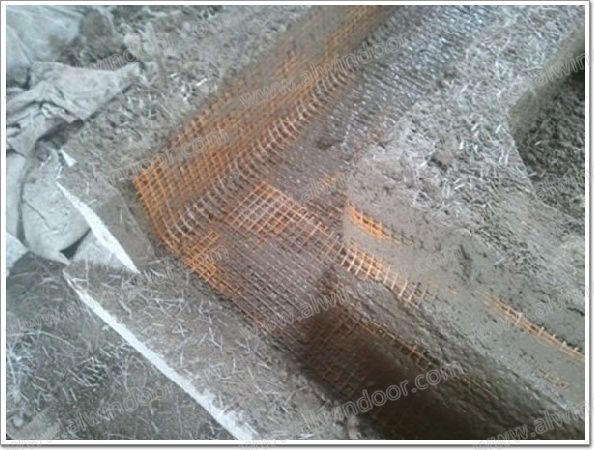 a. 在GRC厚度達(dá)到3~5mm時,鋪設(shè)一層耐堿玻璃纖維網(wǎng)布,并用滾輪將網(wǎng)格布壓入砂漿層。網(wǎng)格布的鋪設(shè)力求與模具造型吻合,搭接寬度不少于50mm;