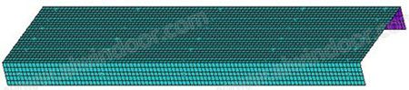 本文以澳門威尼斯人酒店T6B標段單元式幕墻為例,添加約束并在兩個側面施加同向的4.43KPa均布面荷載,計算求解該荷載作用下的槽型鋁板及加勁肋的位移及應力如下: