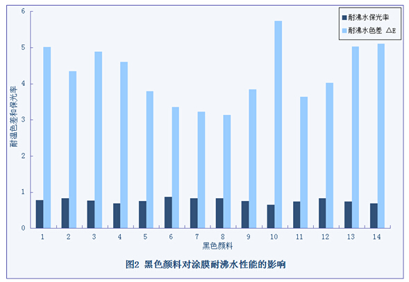 1-14號黑色顏料的耐沸水性能的影響如圖2所示: