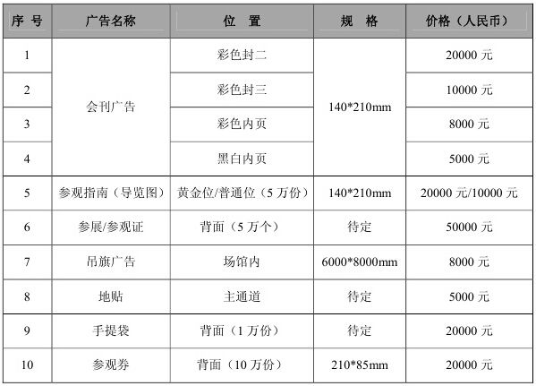 l 3月前簽訂展位的企業送會刊廣告1P,參展指南廣告1P,參觀券廣告10000張。