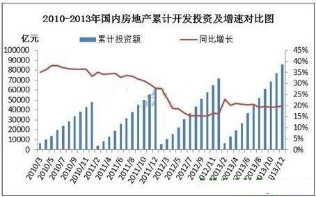 2013年初期國務(wù)院出臺文件,要求各地區(qū)要抓緊把建設(shè)任務(wù)落實(shí)到項(xiàng)目和地塊,確保資金盡快到位,項(xiàng)目盡快開工。2013年房地產(chǎn)開發(fā)投資增速的大幅回升,對國民經(jīng)濟(jì)三架馬車中的投資的影響較為樂觀。國家統(tǒng)計(jì)局最新數(shù)據(jù)顯示,2013年,全國房地產(chǎn)開發(fā)投資86013億元,比上年名義增長19.8%(扣除價(jià)格因素實(shí)際增長19.4%),增速比1-11月份提高0.3個(gè)百分點(diǎn),比2012年提高3.6個(gè)百分點(diǎn)。其中,住宅投資58951億元,增長19.4%,增速比1-11月份提高0.3個(gè)百分點(diǎn),占房地產(chǎn)開發(fā)投資的比重為68.5%。