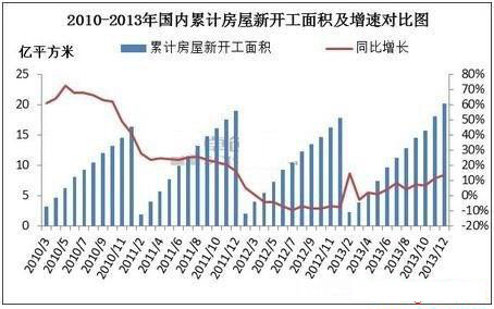 2013年,房地產(chǎn)開發(fā)企業(yè)房屋施工面積665572萬平方米,比上年增長16.1%,增速與1-11月份持平;其中,住宅施工面積486347萬平方米,增長13.4%。房屋新開工面積201208萬平方米,增長13.5%,增速提高2個(gè)百分點(diǎn)。