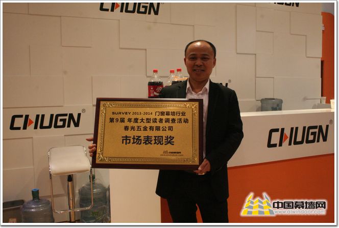 春光五金榮獲第九屆中國幕墻網大型讀者調查活動最佳市場表現獎第三名