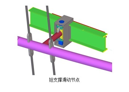 一般徑向支撐采用鉸接構(gòu)造以吸收環(huán)梁與樓面的豎向位移差。對(duì)于長(zhǎng)度很短的徑向支撐,其線剛度大,對(duì)其兩端的位移差非常敏感,采用滑動(dòng)連接構(gòu)造,以降低支撐因兩端的位移差所產(chǎn)生的次內(nèi)力。