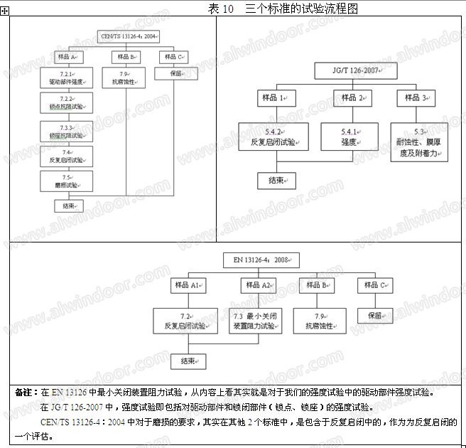 這三個(gè)標(biāo)準(zhǔn)的試驗(yàn)流程圖如表10所示: