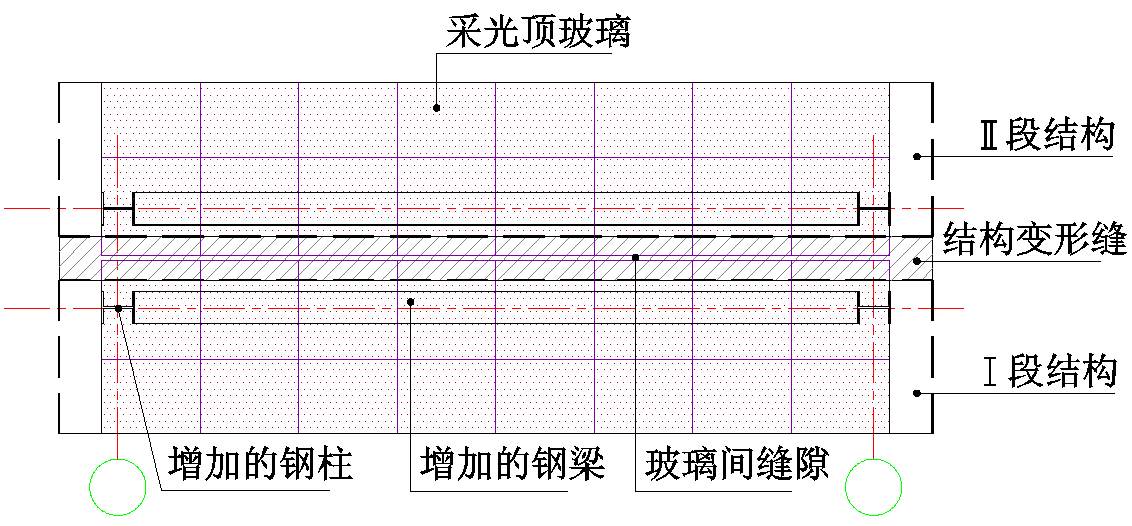 3.2.2采光頂結構不設變形縫,預應力構件跨越結構變形縫。