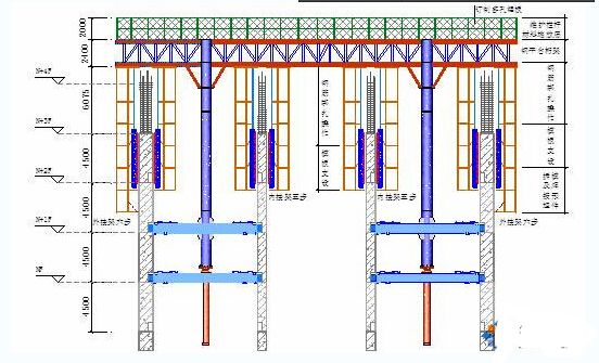 (6)、施工速度快,每次頂升作業(yè)用時僅為2~3個小時,模板掛架標準化,隨系統(tǒng)整體頂升,機械化程度高等特點,可創(chuàng)造2-3天/層的施工速度(主要視工程量大小而進度有所不同)。