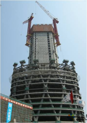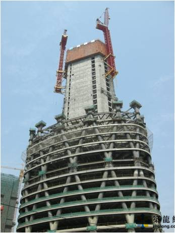 超高層建筑施工,垂直運輸設(shè)備是保證工期的關(guān)鍵,主要是塔吊和施工電梯的選型和布置需滿足施工需求。