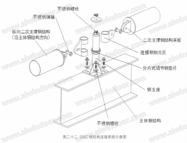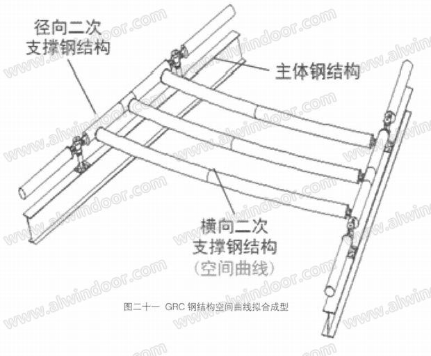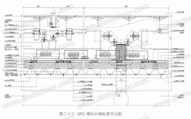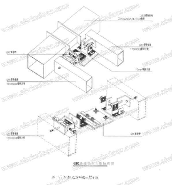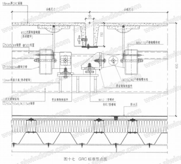 本工程采用的新型GRC面板材料,不僅僅體現在材料的物理、化學特性參數方面,還在構造設計、制造工藝和安裝工藝方面。采用創新的GRC的結構構造體系,并使用數字化設計技術及制造工藝,通過背附式鋼架與GRC面皮共同作用,實現了其“大跨度”、“大曲面”的造型要求。本工程最大的單塊GRC面板跨度可達6m×2,5m。新型的GRC面板材料采用可單塊拆卸的原理構造,整套系統全部采用螺栓(詞條“螺栓”由行業大百科提供)連接,“傻瓜式”安裝,便攜式拆卸。