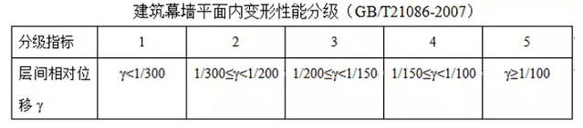 2、幕墻平面內變形性能,非抗震設計時,指標值應不小于結構彈性層間位移角控制值;抗震設計時,指標值應不小于主體結構彈性層間位移角的3倍。