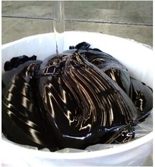 六.支裝B組份打開時有液體流出料以及桶裝B組分表面有液體料,有分層現象: