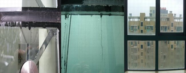 1.原因:使用的硅酮中空膠質量不好,有溶劑(飛度雙組份產品絕對不含此溶劑,因此絕對不會出現“流眼淚”現象)滲入第一道密封膠即熱熔丁基密封膠,丁基膠(詞條“丁基膠”由行業大百科提供)被軟化溶脹而流淌,其密封性與粘接性喪失,從而導致中空玻璃 “流眼淚”現象。