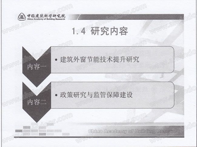 1.4 主要研究內容:建筑外窗節能技術提升研究;政策研究和監管保障建設;