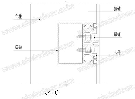 將卡件安裝到位,使卡件與橫梁共同形成一個封閉腔體將掛軸箍住,最后使用自攻釘(詞條“自攻釘”由行業(yè)大百科提供)將卡件固定在橫梁上(見圖4)。