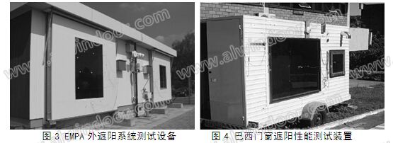 2006年,瑞士聯邦材料測試與研究實驗室(EMPA)研發了一套測試外遮陽系統的測試設備,整個測試系統安置在環境中,采用自然光作為輻射光源,測試外遮陽系統的動態性能,裝置見圖3。