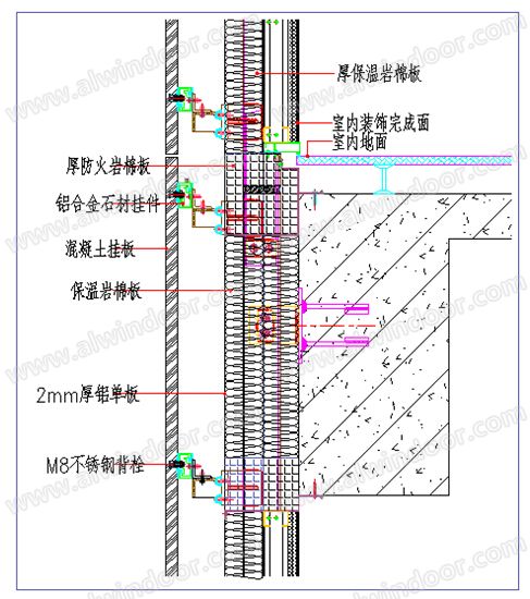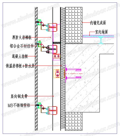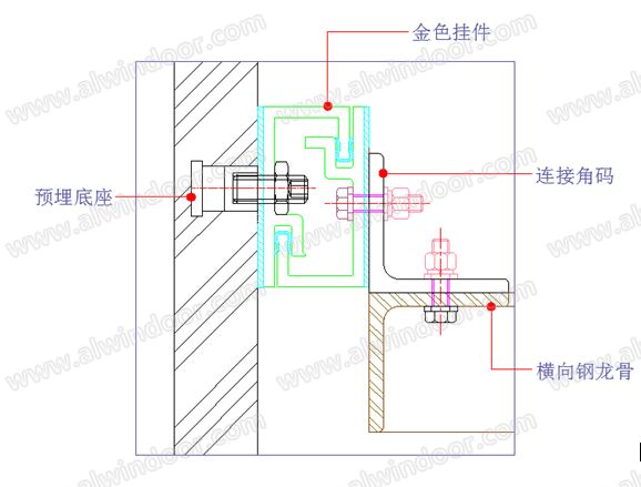 混凝土掛板的安裝與傳統的石材背掛系統類似,典型細部節點如下圖所示(僅供參考):