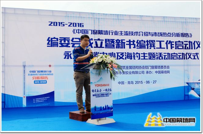 由中國建筑金屬結構協會鋁門窗幕墻委員會主辦、山東永安膠業有限公司協辦、中國幕墻網承辦的《中國門窗幕墻行業技術及市場分析報告》以下簡稱《分析報告》編委會成立暨新書編撰工作啟動儀式,于2015年6月27日在山東青島嶗山魯商凱悅酒店隆重舉行!本次活動邀請到中國建筑金屬結構協會副秘書長,鋁門窗幕墻委員會主任黃圻先生、鋁門窗幕墻委員會常務副主任董紅女士,副主任劉萬奇先生等協會領導,同時參加會議的還有來自河北、浙江、江蘇等地方協會領導、行業專家和來自全國的知名開發商企業代表負責人等共計百余人,共同見證《分析報告》的啟動儀式。