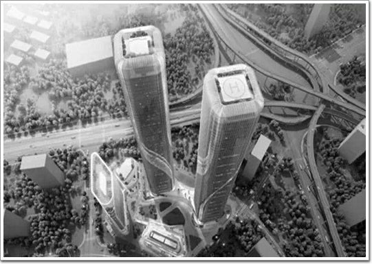 目前的設計,不管是從機場高速進城,還是從三橋過來,或者是從江南大道、風情大道走過,看到的雙子塔都會呈現一個“門”字,完全是360°無死角。