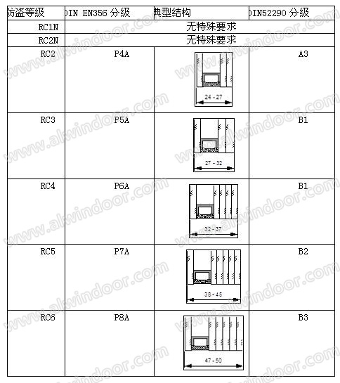 新標準中在RC1以及RC2之后附加了“N”這一內容。“N”的作用是:在選擇某一系統時,可與委托人自由協商玻璃的種類。當然,如要檢測,則必須配合P4A防盜等級的玻璃板來實現,如上表中所述,帶角標1) 2)的屬于這一類。
