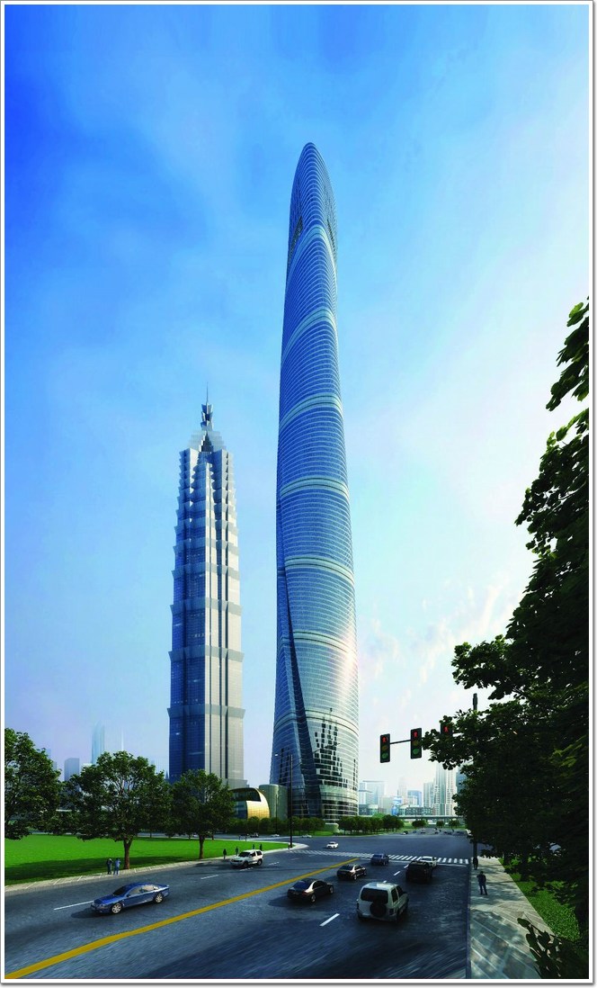 上海中心大廈,位于浦東的陸家嘴功能區,占地3萬多平方米,所處地塊東至東泰路,南依銀城南路,北靠花園石橋路,西臨銀城中路,為上海陸家嘴摩天大樓建設計劃最后的壓軸工程。其建筑設計方案由美國Gensler建筑設計事務所完成,主體建筑結構高度為580米,總高度632米,是目前中國國內建設中的第二高樓。上海中心大廈總投入超過148億元,按照工程計劃,大廈將于2015年全面建成并啟用,成為世界第一綠色摩天高樓并與420.5米的金茂大廈、492米的環球金融中心共同構成浦東陸家嘴金融城的金三角,勾勒出上海的摩天大樓天際線。