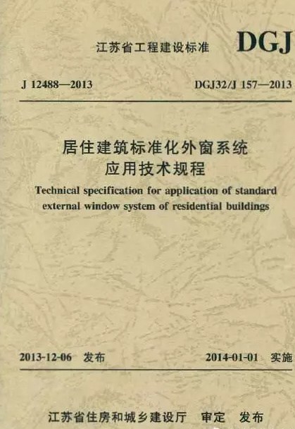 首先說說這份《居住建筑標準化外窗系統(tǒng)應用技術規(guī)程》DGJ32/J157-2013,是在2013年開始執(zhí)行的,其中對江蘇地區(qū)居住建筑的外門窗標準化設計提出了新的要求,在規(guī)格尺寸、玻璃配置、節(jié)能附框方面,作為強制標準的要求是國內第一個省份出臺類似標準的。