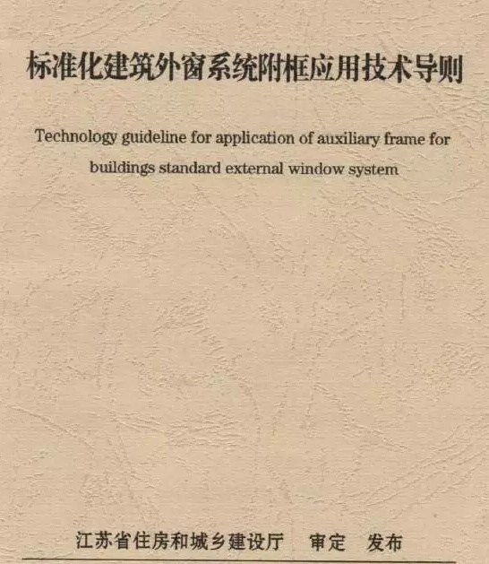但是,很多項目原本不需要設計附框的,現(xiàn)在必須安裝一個附加的東西,該怎么設計?門窗該怎么安裝?行業(yè)內一時很混亂,尤其是很多設計單位,根本不知道該怎么出圖。去年,江蘇省出臺了下面這份指導附框的技術導則,也就是上文提到 的被廢止的技術導則。