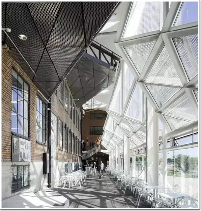 大部分運用還是在室外建筑的外層,不同大小的孔洞,實現肌理效果的變化,富有層次感,并且具有一定的透光性,像一層“面紗”,保證良好采光的同時又透露著些許神秘的氛圍。