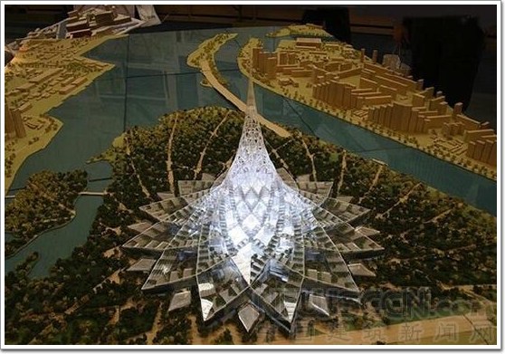 水晶島由Norman Foster為莫斯科設計,這座1,476英尺(450米)的建筑物并不想成為全球最高塔,但它一層額外的“皮膚”可以抵擋莫斯科冬天的嚴寒,從而減少熱量的流失。該塔會使用可再生能源。原本按計劃會在2014年落成,但因為金融危機整個計劃被推遲了。