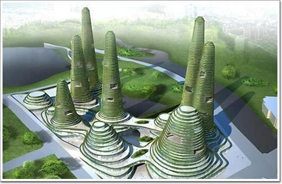 Gwanggyo綠色城是韓國首爾計劃建造的一座綠色新城。荷蘭著名的MVRDV建筑事務所負責設計Gwanggyo綠色城的建設方案。據建筑設計師介紹,Gwanggyo綠色城可以容納7.7萬居民,是一個可實現自給自足的綠色社區。綠色城最重要的特點就是其中的眾多未來派建筑和綠色環境。這種未來派建筑都是由一個個層疊的、但稍有偏移的環形結構組成。這些環形結構有兩種用途,其一就是用作陽臺,另一個用途就是室內公共會議或聚會場所。在未來派建筑中,既有辦公室,也有住宅和購物中心,其它城市生活所必須的設施也應有盡有。此外,這些建筑還具有過濾空氣和降低能耗的功能。