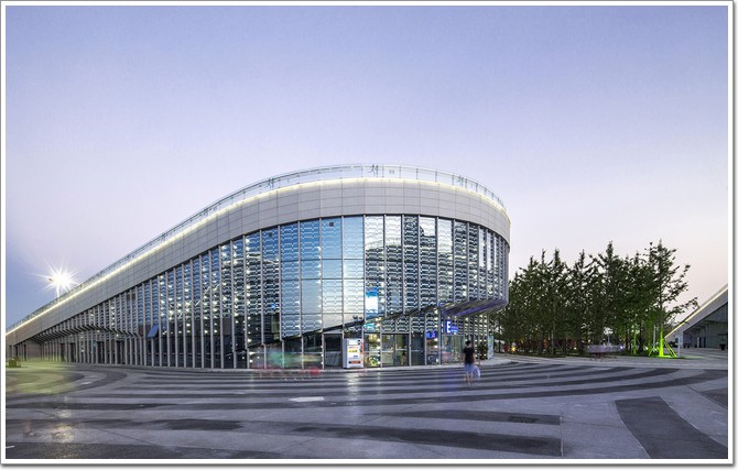 除了表現它的建筑性格和體育性格之外,規劃設計還嘗試引入一些揚州本地的文化特質,如尺度上的把控和與自然的聯系。在尺度上,常規的場館都是很大的空間,而揚州李寧體育園的場館,特別采用了化整為零的處理手法,把傳統的一個大場館分成幾個小的場館,這使得它們運作起來更靈活。另外場館之間因此而形成了很多內部庭院,每個場館各有特點,外立面裝飾有鋁板幕墻、玻璃幕墻、石材幕墻等,而大量的運用玻璃幕墻也讓室內的活動與室外的光線、景致有更好的互動。