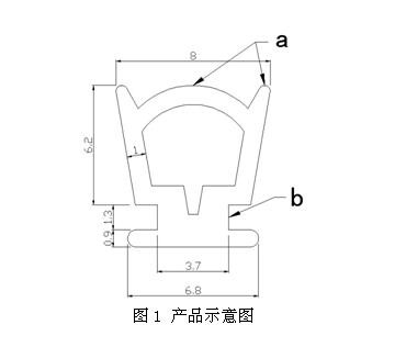(2)b處設為空腔,具有良好的彈性和壓縮余量,可更好的與型材槽口配合,同時便于生產過程中的分流問題,也節約材料。