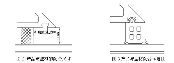 2.2產品與型材的配合尺寸、安裝示意圖