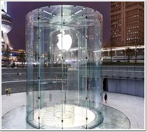 第一個將超高點式玻璃肋用在蘋果店的人,絕對是天才,這在以前是讓人無法想象的,幕墻人的智慧是無窮的,能讓玻璃這種脆性材料來充當結構,為參建該項目的幕友點贊!