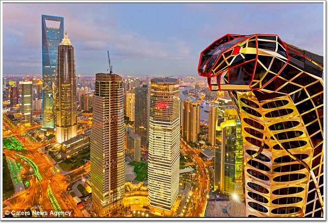 俄羅斯設計師 Vasily Klyukin 最近設計了一座“亞洲眼鏡蛇大廈”。就像名字所說,這座金燦燦的大樓形狀像一條巨大的眼鏡蛇,在它的身體里容納了辦公和居住空間,而頭上是餐廳、夜店和觀景平臺。