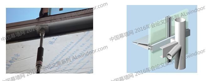 b、隱藏不銹鋼吊桿承受幕墻自重(立面簡潔);